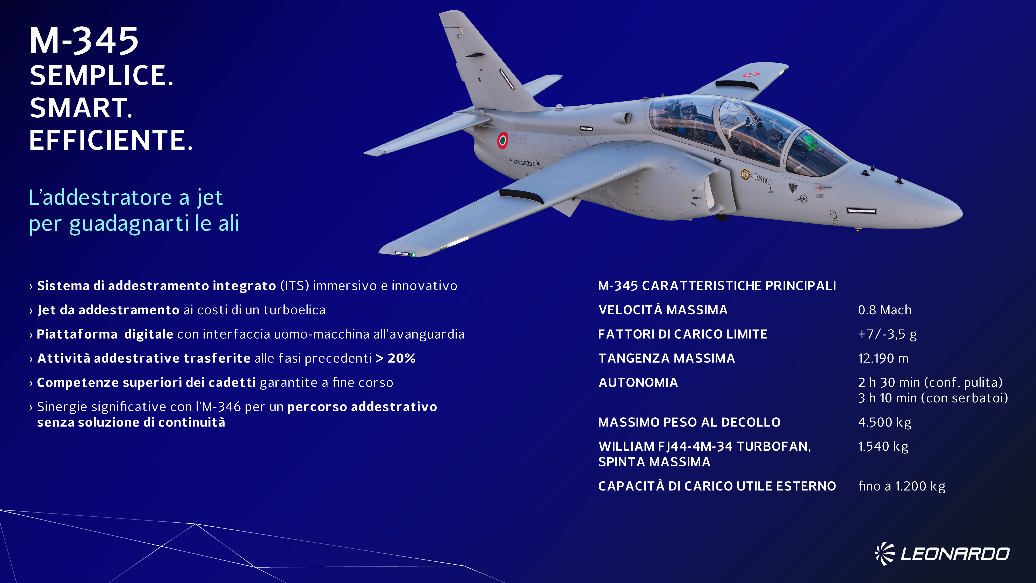 “Il sistema M-345 è semplice, smart, efficiente. La sua architettura consente una transizione naturale verso la fase avanzata dell’M-346”.