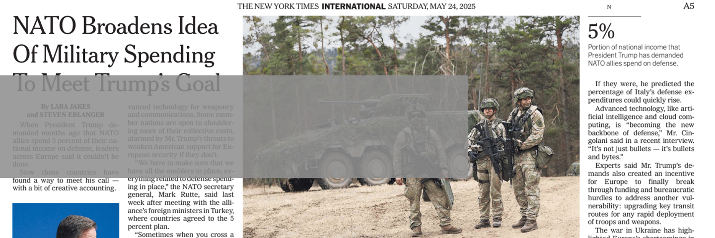Alla luce delle nuove sfide di sicurezza e delle crescenti complessità geopolitiche, la NATO sta valutando l'opportunità di allargare la definizione di spesa per la Difesa, includendo infrastrutture critiche, cybersicurezza e investimenti in tecnologie avanzate. Una visione più estesa, che mira a bilanciare le esigenze militari tradizionali con ambiti più innovativi.