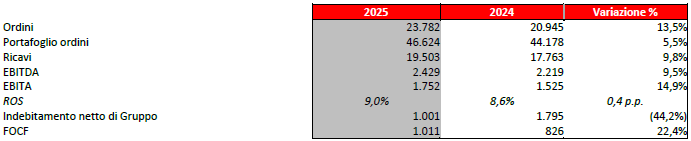 I risultati preliminari dell’esercizio 2025 evidenziano una performance particolarmente positiva del Gruppo, in significativa crescita sotto tutti gli indicatori rispetto all’esercizio precedente.