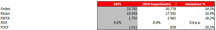 In miglioramento anche il Free Operating Cash Flow (FOCF), +22,4% rispetto al 2024 (+20,5% rispetto al dato isoperimetro), a dimostrazione dell’efficacia delle azioni intraprese.